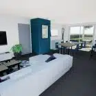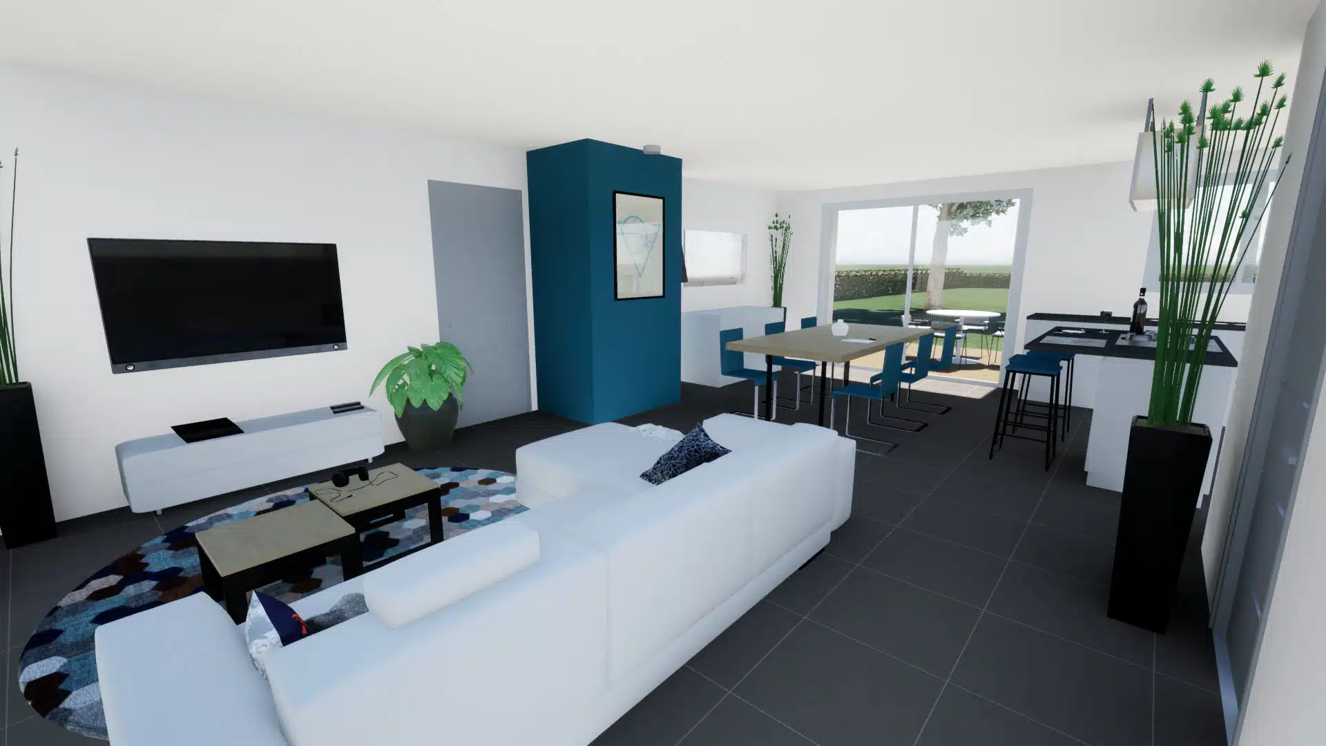 - d’une pièce à vivre avec cuisine ouverte. Ses grandes ouvertures permettent une belle luminosité dans la pièce de vie