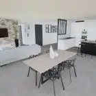 - D’une pièce à vivre de 44 m². L’exposition de la maison et les grandes ouvertures promettent une belle luminosité dans la pièce.