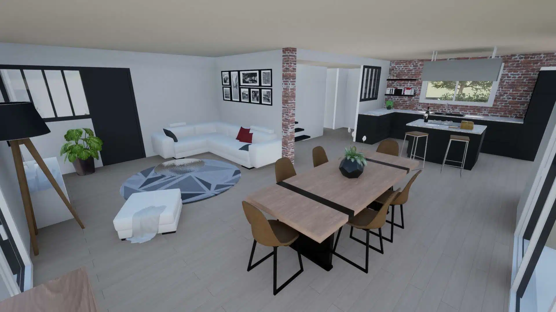 - D’une pièce à vivre de 56 m². L’exposition de la maison et les grandes ouvertures promettent une belle luminosité dans la pièce.