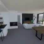 – d’une pièce à vivre avec cuisine ouverte de 57m²